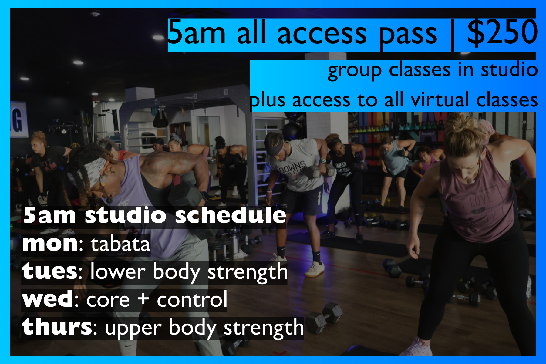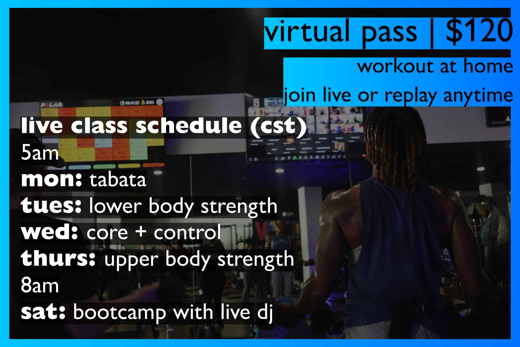 This 6 week program aims for total body and lifestyle transformation. The program is designed to reach all levels of fitness: Beginners, Intermediate and Advanced. Passes are available to participate in-person or virtually.